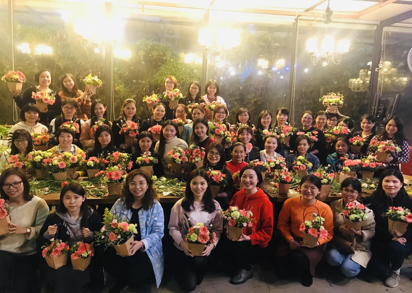 陽(yáng)春三月,春暖花開,金色的陽(yáng)光格外迷人,走在三月,柔情似水,花兒絢麗,處處洋溢著沁人心脾的馥郁芬芳。這是一個(gè)屬于花的季節(jié),這是一個(gè)屬于全體女同胞們的季節(jié)。為慶祝一年一度的婦女節(jié),光華科技精心舉辦了一場(chǎng)“女神節(jié)花藝DIY”活動(dòng),活動(dòng)現(xiàn)場(chǎng)鮮花簇?fù)恚枷闼囊纭?/span>